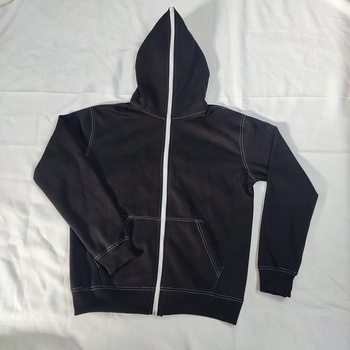 هوديي قطني بسحاب كامل قابل للتخصيص قابل للتنفس أسود مع غياطة بيضاء لفصل الشتاء